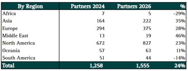 Overall, ServiceNow added 297 services partners, representing a ~24% increase in the last 18 months. All regions expanded except Africa and Latam.
