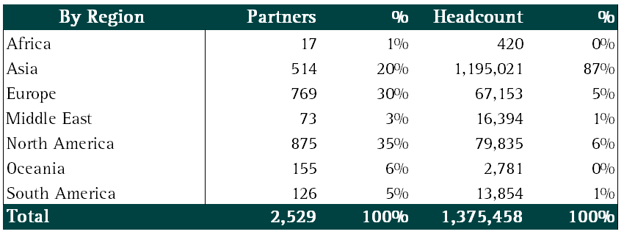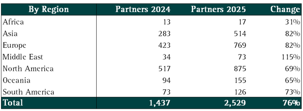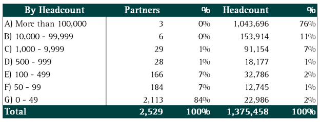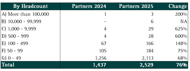 More than 90% of partners in the ecosystem have fewer than 100 employees, highlighting a highly fragmented landscape dominated by small firms.